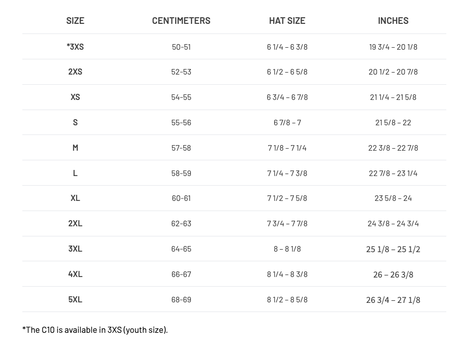 Kombinerat med ett optiskt överlägset ansiktsskydd med bred synvinkel och sitt förbättrade "ACS" Advanced Channeling Ventilation-system som tillåter fullt luftflöde fram och bak för att spola upp och ut värme och fukt, ger C10 en säker och bekväm åktur oavsett förhållanden. Med storlekar från 3XS till 2XL ger C10 samma fantastiska skydd för både ungdomar och vuxna förare.